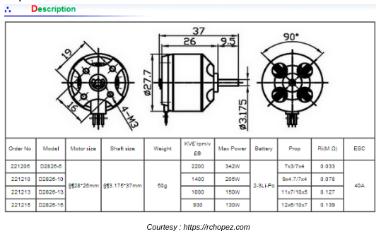 In this decision table, we will compare and analyse key parameters of different BLDC motors, focusing on thrust, power, voltage, and efficiency. These parameters are critical in determining the motor's suitability for a VTOL drone project.
